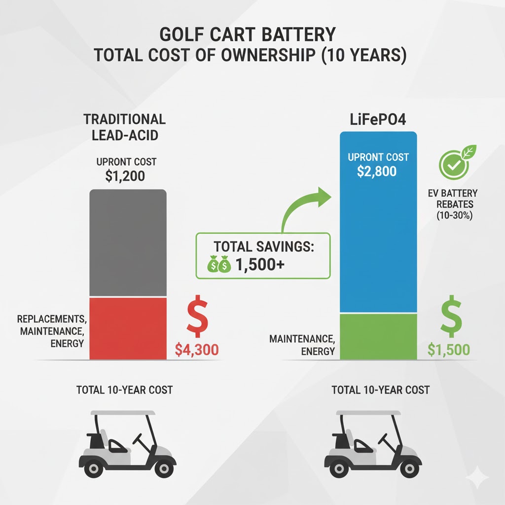 While LiFePO4 batteries cost 2-3x more upfront ($2,800 vs. $1,200 for a 48V pack), their 8-10 year lifespan crushes lead-acid’s 2-4 years. Factoring in replacement, maintenance, and energy costs, LiFePO4 saves $1,500+ per cart over a decade. Some states even offer EV battery rebates (10-30% of cost) for golf cart upgrades—check local programs to offset initial investment.